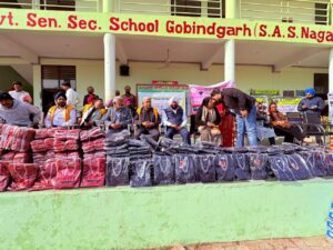 Around 400 students of Government Senior Secondary School, Gobindgarh, Mohali, received sweaters and boots from the Lions Club Panchkula Premier today as part of a social welfare initiative.