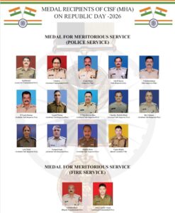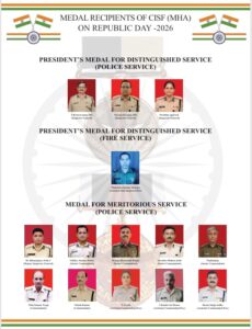 On the occasion of Republic Day 2026, several officers and personnel of the Central Industrial Security Force (CISF) have been honoured with prestigious national awards in recognition of their outstanding and dedicated service.