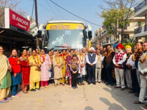The sixth bus under the Mukhyamantri Teerth Yatra Bus Scheme was flagged off from Sector 66, Mohali, by MLA Kulwant Singh. Several dignitaries were present on the occasion, including constituency coordinator and State Awardee Phoolraj Singh, Gurudwara Committee President Manjit Singh, Temple Committee President Gopal Sharma, Block President Arun Goyal, former councillor Rajni Goyal, Krishan Lal Kapoor, and Pitambar Ji.