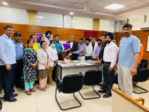Mohali : The Employees and Workers Joint Action Committee of Government Medical College and Hospital Sector 32 (GMCH-32) organised a grand welcome ceremony for newly appointed Medical Superintendent Professor Vishal Guglani today after he formally assumed charge of his new role. Members of the GMCH Employees and Workers Joint Action Committee, along with representatives of several staff unions and departments, gathered at the hospital premises to congratulate the new Medical Superintendent. On the occasion, committee members presented a bouquet to Prof. Guglani and extended their best wishes for his tenure. Employees from a wide range of departments participated in the event, reflecting the collective enthusiasm of the hospital workforce. Among those present were security staff, ward attendants, paramedical workers, lift operators, public health staff, drivers, data entry operators, file restorers, grid Aashadeep security personnel, sanitation workers from the Mental Health Institute, tailoring and catering staff, and employees from the AC plant, gas plant, sewerage, and maintenance departments.Addressing the gathering, Professor Vishal Guglani expressed gratitude to the staff for the warm welcome. He emphasised the importance of teamwork in ensuring high-quality healthcare services and said he would work closely with all employees to improve patient care and hospital services. Prof. Guglani highlighted that the hospital administration would focus on strengthening coordination among departments to ensure smooth functioning and better facilities for patients visiting the hospital.