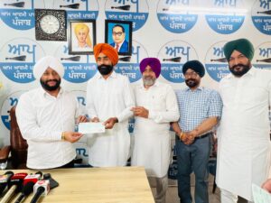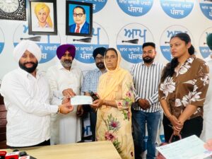 Mohali : Kulwant Singh today distributed cheques of ₹5 lakh each to sarpanches of 13 villages in the Mohali constituency, rewarding panchayats formed through unanimous consensus. The announcement was made during a press conference held at his office in Sector 79. The initiative is part of the Punjab government’s effort, led by Bhagwant Mann, to promote harmony and unity in rural areas.