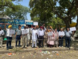 AAP leader R.P. Sharma joined the protest and assured residents that the matter would be taken up with the concerned authorities.