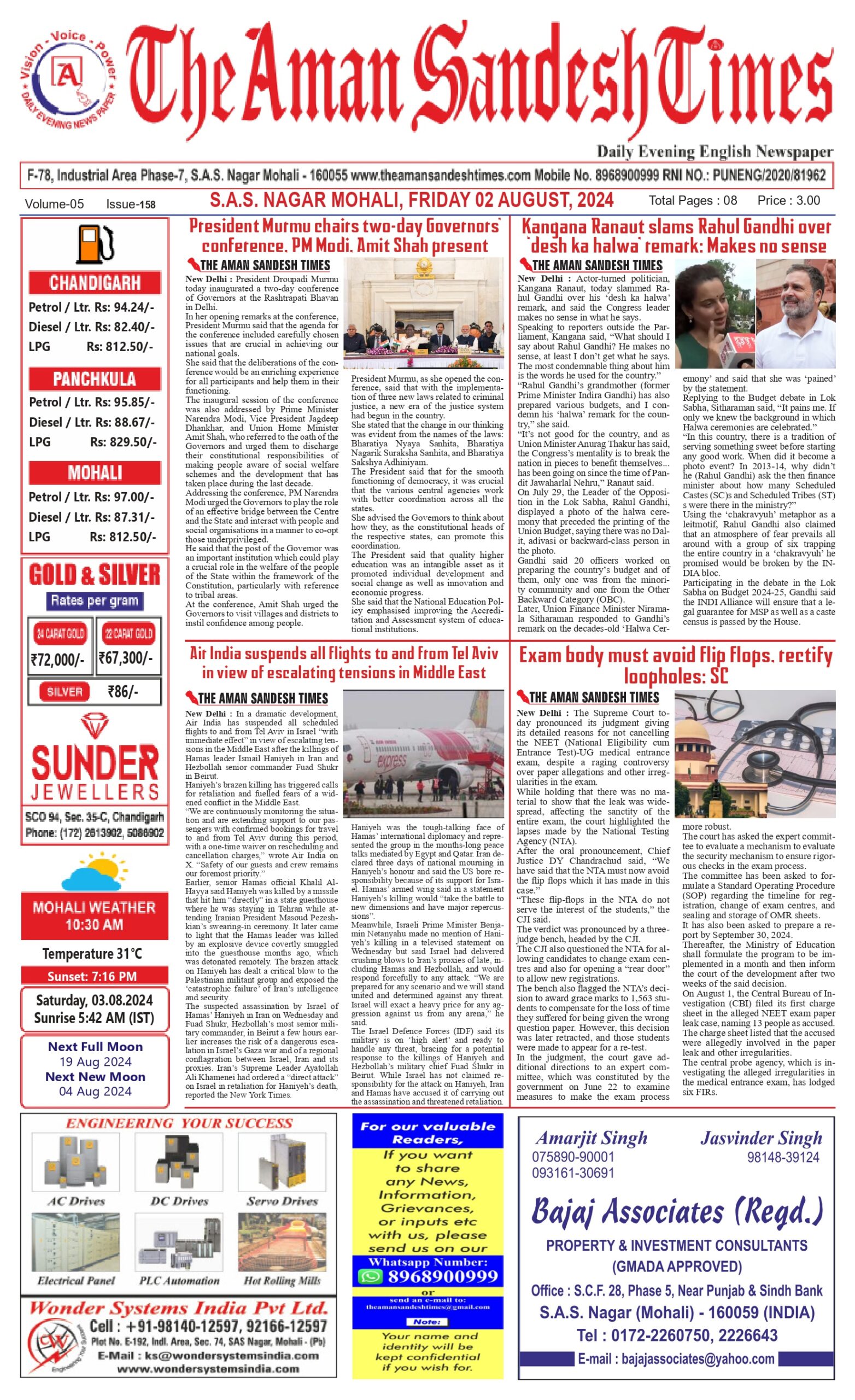 Daily Evening English Newspaper The Aman Sandesh Times Saturday 03 August 2024 August 3, 2024 6:07 pm